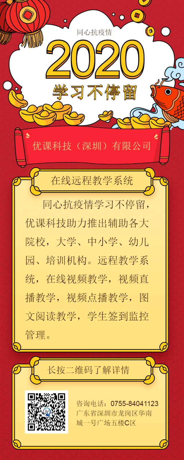 同心抗疫情學習不停留,優(yōu)課科技助力推出輔助各大院校,大學、中小學、幼兒園、培訓機構。遠程教學系統(tǒng),在線視頻教學,…